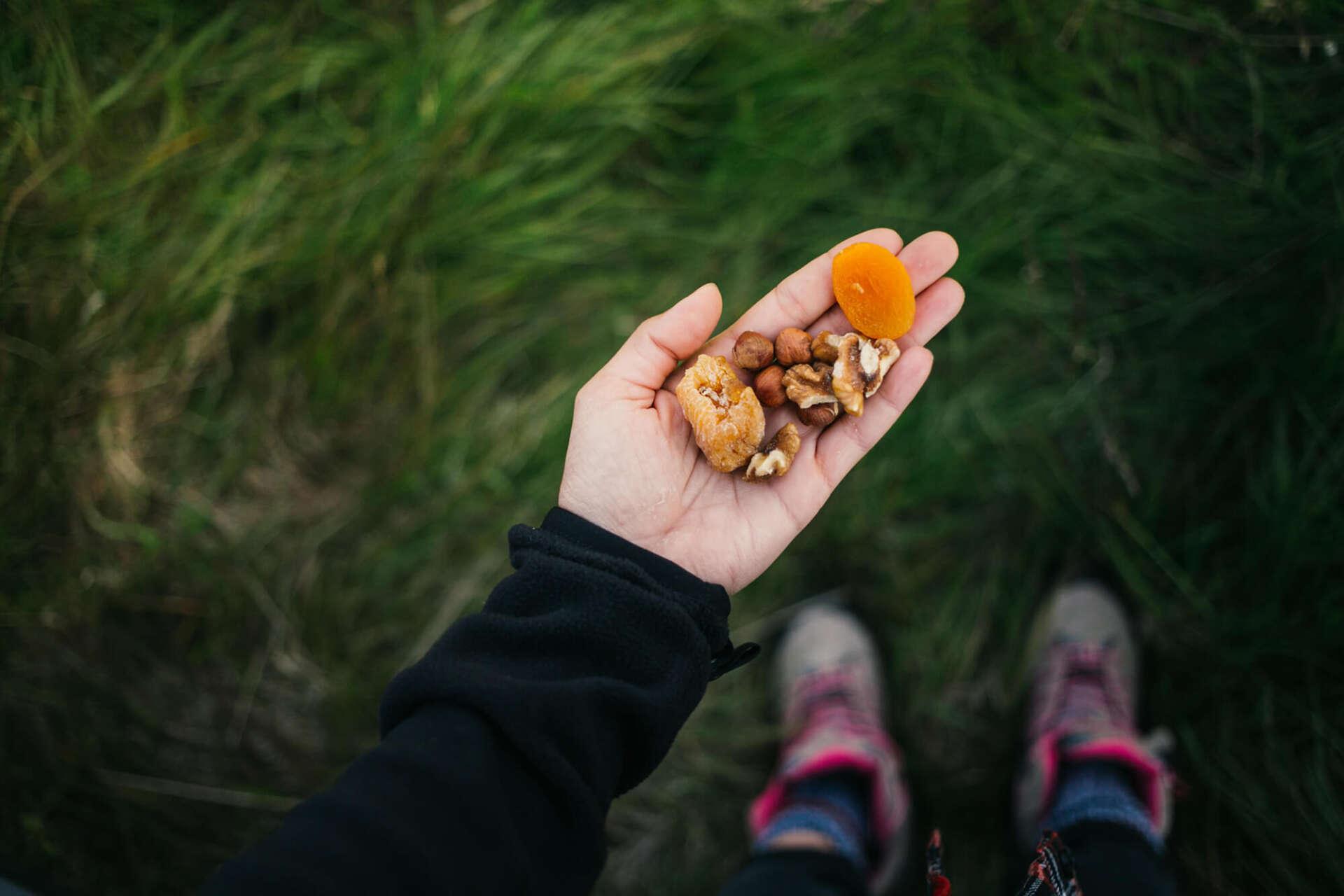 En flerdagesvandring kræver kræfter. For at opretholde din ydeevne under turen bør du sikre dig tilstrækkelig energi ved at spise rigtigt. Under etaperne er letfordøjelige snacks som nødder eller müslibarer særligt velegnede til at give dig energi undervejs. Til hovedmåltiderne bør du pakke lette, men nærende retter. Sørg for altid at have nok vand med – en drikkeblære er guld værd her, da den giver dig mulighed for at drikke, mens du går. Især på flerdagesvandringer er det også vigtigt, at du indtager tilstrækkeligt med elektrolytter for at udligne din væskebalance. Magnesiumtabletter hjælper med at forebygge kramper.
